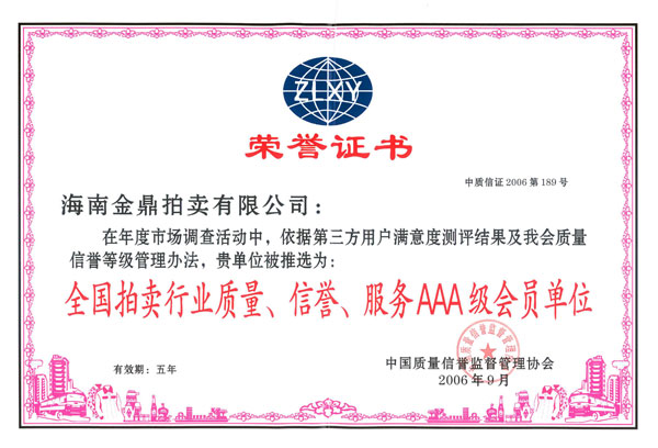 海南金鼎拍賣有限公司成立于2004年2月24日。經(jīng)營(yíng)范圍:許可項(xiàng)目:拍賣業(yè)務(wù)(依法須經(jīng)批準(zhǔn)的項(xiàng)目,經(jīng)相關(guān)部門批準(zhǔn)后方可開展經(jīng)營(yíng)活動(dòng))